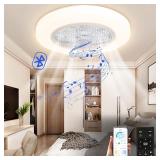 - Ceiling fan and chandelier fixture 2 in 1 in full black finish