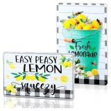 Moxweyeni 2 Pieces Easy Peasy Lemon Squeezy Tin Sign Lemon Room Decor Vintage Metal Signs Wall Decor Lemon Tin Sign for Home Bar Kitchen Restaurant Farm Wall Door Decoration