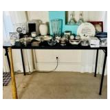 2 hours, get it fast! Get ready for Summer: Vintage iron chairs and table. Plus Tiffany, Spode, Waterford and Willow Tree collection, Lenox, Brooks Brothers, Kenwood, Belleek, vintage toys and so much more! Don’t miss out on the butcher block rolling island and the drop leaf kitchen table with chairs. Check out the stunning MCM chairs, nesting tables, and vintage white iron patio set. Kitchenware features quality Calphalon pots and pans, a Cuisinart coffee grinder/brewer, an Osterizer, microwave, Corningware and an incredible collection of bar glasses. A Kenwood Stereo Systems and CD collection, Samsung TV, Canon Printer and wired Apple earphones are not to be missed. Vintage children’s toys and books, Mark Twain (1936 and 1940 edition) books, a Metropolitan Seminars in Art and The Harvard Classics book collection, Sports Illustrated Magazines from the late 80s, a Downton Abbey Collectors Set and a variety of Christmas décor are all looking for a new home! You’ll also find quality ladies purses, high end menswear (Brooks Brothers, Ralph Lauren, mostly sizes M and L), and don’t pass up the Louisville Slugger baseball bat! Incredible finds! All from a smoke and pet-free home. Be here on time! We cannot extend this 2 hour sale! Everything must go!