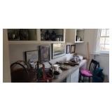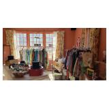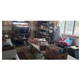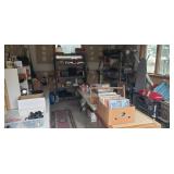 A garage, artist loft and the house are filled with fun eclectic mix of items. Including collectible books, vintage clothing, fun bright women's summer clothing, snow shoes, framed art, china, small weber grill, Stihl weedwacker, small outboard engine, boat lines, books, cd's, tapes, hand tools, tools, LG Matt/glass cutting tool, love seat, couch and more. And the list goes on!