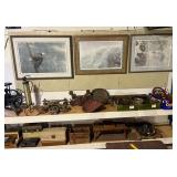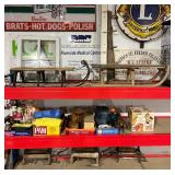 Magnolene Ford Oil porcelain sign, Texaco Diesel Chief porcelain sign, Wisconsin license plates, Red Wing and other stoneware, neon beer lights, beer mirrors, St. Croix and other fishing poles and tackle, Breyer animals to include: horses, bulls, bison, pegasus, unicorn, pig & moose, compound bows, Rock-Ola model 442 jukebox, cigarette machine, pedal tractors, bicycles, Coca-Cola cooler, bird cages, iron bed frame, antique bottles, M&M dispensers, toys, David Bradley chainsaw, 33 & 45 rpm record albums, Craftsman router, Boston commercial meat slicer, primitives, glassware, furniture, framed artwork and much more.