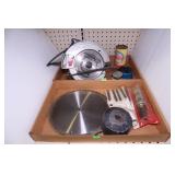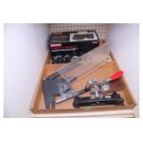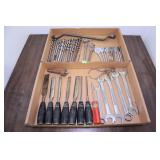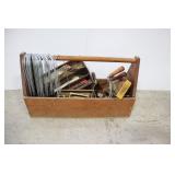 Wood Storage Box With Tools, Pipe Wrench, Saws