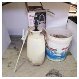 Plastic Bucket With Trowels, Tripod With Lamp