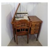 Sewing Cabinet With Kenmore Sewing Machine and Chair