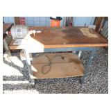 Work Table With Red Wing Ball Bearing Motor With Wire Wheel, Bench Vise