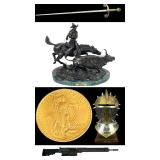Prepare to be awed by an unparalleled collection featuring everything your ManCave dreams are made of! From sleek firearms to collectible gold coins, captivating modern art to ancient maps, mesmerizing geodes, and the coolest midcentury & modern furnishings, jaw-dropping contemporary art to sports memorabilia, and even exotic taxidermy, elegant Chinese porcelain, and luxurious designer accessories – we've got it all and more! Preview Dates & Time WATCH THE ONLINE VIDEO PREVIEW ON OUR WEBSITE AND FOLLOW US ON FACEBOOK AT: https://lmauctionco.com/blogs/news/march-24th-mancave-auction PLEASE NOTE: Questions are not answered on this site. Please direct all questions by email from the auction catalog on each lot in question or by phone at 713-869-1335. |