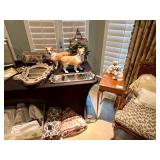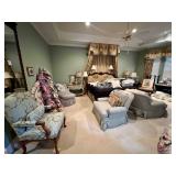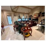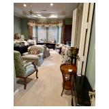 Collectibles: Antique Scales Vintage & Antique Vinyl 33’s, 78’s, 45’s Asian Décor Antique Serving Pieces Gorham “King Edward” Sterling Flatware Vintage Needlepoint Vintage Linens Signed and First Edition Books Antique Books And more… Furniture: Nesting Tables Custom Upholstered Chairs & Sofa’s Robert Allen Arm Chairs Norwalk Custom Leather Sofa Accent Tables Queen Bed w/Linens Leather Top Writing Desk Wood Bookcases Buffet’s Credenza Custom Slipper Chairs Accent Arm Chairs Glass Top Dining Table and Chairs Horchow Small Armoire Darby French Style Swivel Vanity Chair Bar Stools And more…