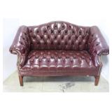 Tufted Burgundy Leather Bench