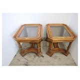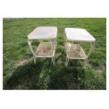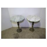 Two Wrought Iron Glass Top Patio Side Tables