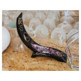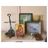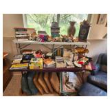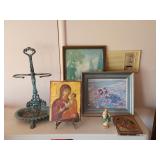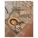 Easter Decor Many Pieces Original Art Sinai : Treasures of the by Konstantinos Manafis & Konstantinos A. Manaphes Solari Bell Vintage Tchotchkes Hollywood Regency Style Furniture Inc. Dressers, End Tables, Mirrors, Accent Chairs, Coffee-tables & Sofa/Entry Tables Vintage Tabletop Lamps Inc. Asian & Other Tabletop Lamps Lenox Pieces Uranium Glass Pair Candle Holders & Serving Tray & Set of Uranium Stemware w/ Pink Glass Pink Depression Glass Nino Parrucca Ceramic Tile Hand Painted Round Small End Table Vintage Brass Fireplace Log Holder Vintage Fireplace Accessory Set Vintage Zither Chartola Auto Harp Harp Chord Piano w/ Piano Bench Vintage Ephemera Waterford Crosses Large Vintage Asian Vase Signed By Artist Wall Glass Display Caibinets Collection of Clocks Inc. Wall & MCM 2 Sofa's Leather Accents & Paisley Pattern Vintage Hollywood Regency Wall Mirrors Talavera Cross & Other Jesus Themed Decor Blue Leather Recliner & Matching Ottoman 3 Piece Living Room Furniture Set inc. Coffeetable, End Table & Sofa Table / Entry Table / TV Stand Accent Chairs Inc. Matching Pair Persian Rugs & Other Large High Quality Area Rug Vintage Jewelry Boxes Vintage Purses/Handbags & Clutches Vintage Women's Hats (Neiman Marcus) In Neiman Marcus Box Lots of Costume Jewelry Inc. Vintage Pieces Lots of Women's Clothes Inc. Vintage Women's Shoes Men's Clothes Vintage Bathroom Accessories Vintage Nambe Pieces Inc. Vase, Candle Holder, Glass Wine Decanter w/ 2 Glass Bar Glasses, 4 Serving Trays Ascending Sizes & Glass Serving Tray MCM Pyrex Different Patterns MCM Drinking Glasses Vintage Sheffield Steak Knives Set In Original Carrier KitchenAid Mixer Large Bakers Rack (Teal) Quality Dark Wood TV Tray Set w/ Stand Dish Set By HD Designs Vintage Mikasa "Noblesse" Chine Dish Set Dish Set Handmade In Greece Vintage Easterling Bavaria Germany Kitchen Serving Pieces Vintage Gorham Crystal Coffee Mug w/ Handle 2 In Original Boxes (West Germany) Limoges Hand Painted (France) Espresso Saucer w/ Saucer Vintage Glassware (Greece) Vintage GCHI Hellas (Greece) Porcelain Espresso Cups & Saucers Set Vintage L Godinger & Co. Tea Serving Set Vintage Tea Cups & Saucers Set (Czech Republic) Inc. New In Box Vintage Tea Set (Germany) Unique Wine Bottle Holders (Signed By Artist) Vintage Green Drinking Glasses Quality Kitchen Glassware Inc. Serving Dishes & Drinking Ware Blue & White Kitchenware Lenox Christmas Dish Set 2 Different Silverware Sets Pots & Pans Wrought Iron Kitchen Table w/ Glass-top & Matching Chairs Hollywood Regency Buffett Table w/ Matching China Cabinet & Dining Table w/ Chairs 3 Vintage Wrought Iron Bed Frames - 2 Kings & 1 Queen Unique Bedroom Dresser Pink Bathroom Towel Set Vintage Floral Luggage 2 Matching Pieces Sewing Items Inc. Vintage Sewing Machine In Original Case Quality Throw Blankets Bird Feeder Selection of Patio Tables & Chairs & Outdoor Bench (Wrought Iron) Stainless Steel Outdoor BBQ Collection Teal Planter Pots (Large) Terracotta Planter Pots (All Sizes) Planter Pots Outdoor Wall Clocks Tools Inc. Hand & Power Vintage Gold Clubs