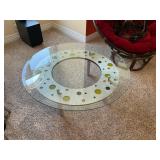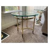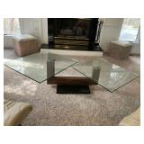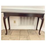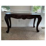Glass Top Table with marble base and solid wood frame, glass can be moved in different positions