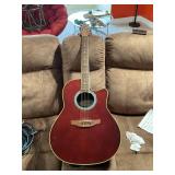 This Ovation guitar has a center soundhole, Rosewood fingerboard. Ovation Celebrity acoustic electric guitar with soft carrying case 20