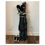 Right Hand Golf Clubs & Titleist Bag & size 12 Golf Shoes