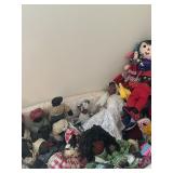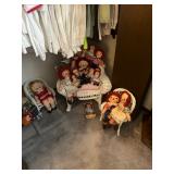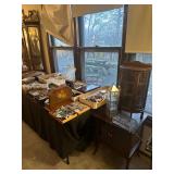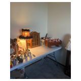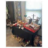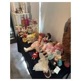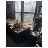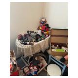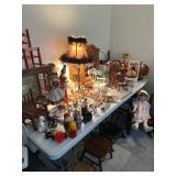 100's of dolls from 1900 to 1970s, raggedy and Andy, Mami, dolls, German, half dolls, frozen Charlottes, old world dolls, kewpie dolls.... so many to mention. vintage doll furniture. Vintage Christmas, Vintage metalware, costume jewelry, mid- century coffee table, many curio cabinets, dining room, table and chairs, kitchen dinette, microwave oven, two stereo systems, vintage records some new. Vintage and antique perfume bottles. Crystal figurines. Lamps. Wall art. Lawn and garden, many many statues. Some tools. bedroom set that can be broken up, Office furniture. Clothes and purses.