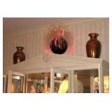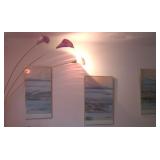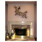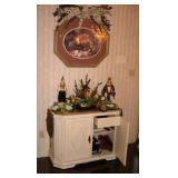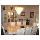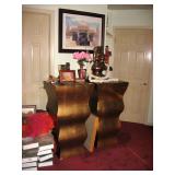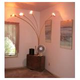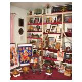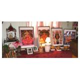 . • 50+ modern Furniture items, 3 pairs matching sofas & loveseats, dining room table w/10 chairs, lighted display cabinet, bar, mirrored bar stand, 3 bedroom sets, day bed, matching pair wing chairs, office furniture & desks, foyer table, accent furniture décor • Lamps, table & floor, fiber optic lamps, pair floor lamps w/flame-burning look • 40+ Artwork, framed & most signed assorted mediums, oils, prints, mixed mediums • Swanee Morris 1975 signed metal art • Argentina tango dance fur wall hanging art • India décor items & collectibles • Hindu & religious items, décor & collectibles, goddess & other statues • Electronics, Sony & other TV's