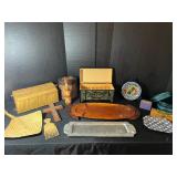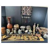 Here are just a few of the items included in this sale: Chinese Altar Cabinet Gorgeous Asian Carved Wood Altar W/ Cabinet Asian Console Altar Table Asian Style Carved Wood Trunk Antique Drop Front Asian Chest or Trunk Asian Design Wood Table Asian Wood Carved Storage Trunk Six Asian Inspired Chairs Rice Carved Poster Bed Brutalist Coffee Table Attributed to Paul Evans "Cityscape" MCM Suede-like Chair By Contemporary Designs MCM Wood Chair With Vinyl Seat Henredon Folio 16 Japanese Style Console Antique Oak Library Table Vintage Wood Display Cabinet Vintage Wood Cushioned Window Bench Thomasville Vintage Wood Console Drum Table With Drawer Hand Carved Small Table Or Stand Antique Mahogany Parlor Table Wood Sofa Table W/ Black Inset Drexel "18th Century Collection" Chest of Drawers Vintage 18th Century Classics by Drexel Night Stand Full Size Bed Frame With Brass Headboard Georgian Style Ivory Armchair Vintage Green Upholstered Boudoir Chair Vintage Upholstered Arm Chair Vintage Wood Vinyl Armchair, Nail Head Accent Gray Suede Like Upholstered Armchair Free Standing Bar Vintage Indiana Desk Co. Wood Office Desk Vintage Wood Desk Chair Adjustable Shelf Bookcase, Printer, Office Supplies Connoisseur Heritage Retro Brass Framed Mirror Fraying But Beautiful Rug Vintage Prayer Rug In Navy And Red Vintage Fringed Persian Rug, Navy/Red Turkish Kilim Style Pillows African Textiles, Basket And More Blue Depression Glass - Mayfair Cookie Jar Nikko Gracious Pattern Dishes and More Spode Blue Room and Archive Collection Plates Spode Dishes Blue and White Willow Ware and More Mixed Wedgwood China and More Lenox, Wedgwood, Gorham, and Mikasa Dishes Lodge Cast Iron And More Command Performance Gold Stainless Cookware Asian Inspired Ceramics Incl Tall Vases Marshall Pottery and More Hand Painted Pottery Vessels Pete's Pottery Signed Collection In Blue & Green and More Stoneware Pottery Assortment Pottery Pieces Animal Masks And More Rock Carvings Retro Apple McIntosh Products Vintage Coronet Typewriter and More LG Ultra HD 56" TV With Mirage Speakers DVD Collection Vintage R&B, Jazz, Rock LPs - Incl. Jimi Hendrix Cosmic Feeling Panasonic Stereo, Sony Clock, and Pocket Recorders Masculine Decor Incl Vintage Ashtrays Three Women's Kuba Cloths Ethnic Men's Clothing With Colorful Fabrics Cashmere, Silk, Denim and More For XL New With Tags Men's Suit Jackets and Slacks Men's Vintage Clothes With Leather Bags Men Size 10 Limited Edition Timberlands Men's Shoes, Most Size 10-10.5 Desk Accessories and Carryall Bags Queen and King Bedding, New In Package Better Linens, New In Package and so much more!