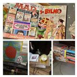 Multi-generational treasures await you! This home is packed with tons of vintage including women’s clothing, games and toys, comics and Mad Magazines, Red Wing crocks, vases, lamps, figurines and various decor from the 1960s--80s. The kitchen and bar are full of colorful glassware and flatware, even breweriana! Wicker and leather MCM chairs, record albums including 45s, a Zenith record player and other vintage electronics, miscellaneous tools including a Dremel coping saw, Toro snowblower, Powermore push mower and fishing lures. Join us in the hunt for more treasures-Everything must go! We do not pre-sell. Bring packing materials and help to move items as we are not insured to do so. All items must be removed by the end of the sale. Parking available on street - avoid driveways and fireplugs Kostoglanis Family |