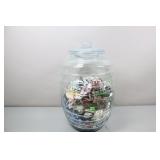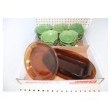 Green Depression Glass Cookie Jar, Brass Candlesticks, Mugs