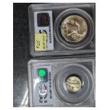 Graded coins- 1900 O/CC ms62 1936 50 cent Elgin ms65 1954 S Ms65 50 cent 1944 S Ms65 Mercury head dime Firearms- Ruger P95 DC 9mm Walther P22 22LR H&K P2000 40 S&W Sig Sauer P320 9mm Sig Sauer Sig MPX Copperhead 9mm Sig Sauer Sig 516 223