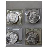 The US historic coins collection includes Indian head, large cent, 1909 VDB wheat and steel wartime cents, wartime nickels, Racketeer nickel, silver dimes, silver quarters, silver half dollars and silver dollars Morgan silver dollars- 1900 O/CC ms62 1890 Carson City 1892 Carson City 1892 Carson City 1884 O 1898 O 1899 O 1879 1898 1883 Carson City 1878 7/8 1904 0 1896 1882 S 1880 S 1878 seven tail feather 1896 1894 Carson City 1884 O 1893 1884 Carson City 1880 O 1881 S 1881 S 1880 O 1892 Carson City 1881 S