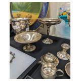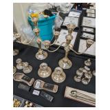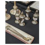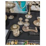 Sterling Hollowware- Trophy bowl weighs 1 lb. 12 oz. Ice bucket weighs 1 lb. 12 oz. Weighted candelabras, candy dishes, candleholders. Salt & Pepper shakers, napkin rings, Tiffany salt shell.