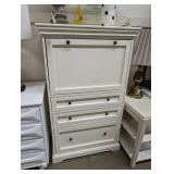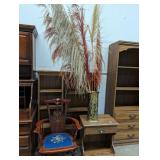 Furniture- MCM white painted dresser, roll top desk, curio cabinet, Pellissima black leather club chair-worn, bedroom set, twin and queen beds, bakers rack, mcm office chairs. Auctions will be held at: