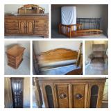 This gentleman has moved and would like to offer these great items up for auction. Kincade Bedroom Furniture, Pulaski curio cabinet, lamps and table, with a little decor.