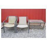 3 Patio Chairs And Glass Top Coffee Table