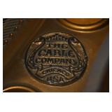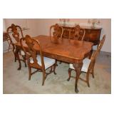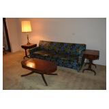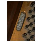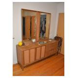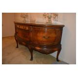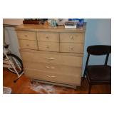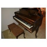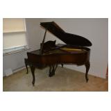Furniture 1940’s/1950’s carved dining room set with shell motif: Dining table with 5 chairs Buffet China Cabinet Gold embossed, leather top, round pedestal side table Gold embossed, leather top, oval pedestal coffee table Gold embossed, leather top, double drop-leaf matching side tables Cable grand piano 1970’s 7’ vinyl sleeper-sofa 1930’s porcelain lamp “Chinese Magistrate” Pair of 1970’s tall brass lamps 1930’s granite torchiere floor lamp 1930’s chandelier fittings Homer Bros. mid century 9 drawer dresser with coordinating highboy and 2 nightstands Wood and metal desk West Michigan Furniture Co. wood and rattan dresser with attached mirror and coordinating highboy