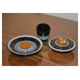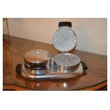 Treasures Sascha Brastoff ashtray Smith Corona Skyriter Murano style hand blown glass clown Evans China 3 piece set Hand painted and 22ct gold vase Doulton and Co Ltd. Dreamweaver figurine Elesva Holland hand painted vase Orrefors vase Orrefors bowl B. W. Buenilum pewter water pitcher Kraftware pewter water pitcher Fire-king Jadeite plates Franciscan Earthenware china set Vintage Kodak cameras Vintage Detecto Doctors scale Military memorial flag Judaica: High Holiday Prayer books in Hebrew Assorted yamakas Sterling Silver Kiddush cups Tefillin Tiffany and Co. Crystal candlesticks Sterling Baby Rattle Sterling Demitasse spoons Whiting and Davis vintage handbag