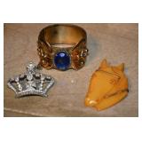 Jewelry Platinum and diamond engagement ring and wedding band Gruen watches Gold rings Gold Charms Gold Service pins Bakelite horsehead pin Sterling Necklaces Sterling Bracelets Sterling Earrings Tiffany and Co. “I love New York” pin Vintage costume jewelry Assortment of costume jewelry Necklaces, bracelets, earrings and rings