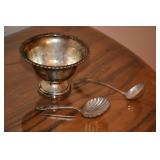 China/Crystal/ Sterling Silver/Silverplate 1930’s National Silver Co. “Adam” Sterling Silver Flatware Franciscan Earthenware china set Mikasa Ivory China “Golden Swirl” dinner service Aynsley English China vase - Cottage Collection Royal Albert Bone China teacup and saucer Royal Vale Bone China teacup and saucer Mayfair Bone China teacup and saucer Hammersley and Co. English China olive dish Pair of Sterling Silver weighted footed candy dishes Assortment of Sterling Silver Kiddush cups Twilight Community silver plated flatware