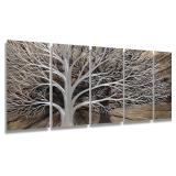 Handcrafted Silver Tree Metal Scuplture Black Shadow 3D Hanging Wall Art 5-panels Contemporary Decor for Office
