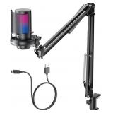 Gaming PC USB Microphone for PC with Boom Arm, USB PC Mic for Podcasts Videos, Streaming, Condenser Mic with Quick Mute, RGB Indicator,Shock Mount,Rotate gain button, Compatible with PS4/5/PC