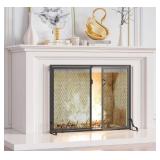 37.8x30.7 in Fireplace Screen with Doors, 2-Pannel Handcrafted Solid Wrought Iron Decorative Mesh Classic Fire Spark Guard-Black