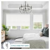 Excellent Material】Made of polyester fabric coated with 100% blackout white backing that have been under rigorously quality tested. It can block out 100% sunlight and UV rays. The thermal backing balances the temperature, maintaining the indoor temperature during the summer and keeping warm in winter, which helps you cut energy bills. It also works well in noise reducing. 【Safety Cordless Design】The best safety solution for your children and pets. You can set at any desired position to get different level of privacy. Stainless steal bottom rod has hang down and hidden screws design in the valance looks simple and elegant. The mechanism has a smooth and steady roll-up speed adjusting your shades up and down silently.