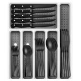Bag Organizer and Plastic Wrap Dispenser with Cutter, 6 In 1 Bamboo Foil and Plastic Wrap Organizer for Kitchen Drawer, Food Storage Bag Organizer for Gallon,Quart,Sandwich,Snack
