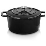 Velaze 6 QT Enameled Cast Iron Dutch Oven, Dual Handles Dutch Oven Pot with Lid,Heavy-Duty Non-stick Round Dutch Oven for Bread Baking, Stewing, Roasting, Good Sealing for All Heat Source (BLACK)
