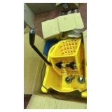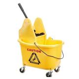35-quart mop bucket with down-press wringer for easily squeezing out excess dirty water from a mop Made of durable PP plastic with a reliable metal handle and rolling casters for smooth portability Ideal for use with a jaw-style or fan-style mop; mop handle holder included for vertically connecting/storing a mop when not in use Bright yellow color provides better visibility for enhanced safety; coordinates with the AmazonCommercial Bucket (B07THZQNRT, sold separately) for clean water Mop and Mop Handle are not included
