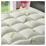 EXTRA THICK】Overfilled with 1200GSM ultra-plush mircrofiber fill,Soft,Comfortable and Breathable,provides support for your shoulders and hips. 【COOL & BREATHABLE】 Our mattress topper uses 40% viscose made from bamboo (more breathable) + 60% polyester (softer) fabric, the composition is designed to prevent you from feeling stuffy and sweaty, allowing for more efficient airflow to reduce overheating, therefore allowing you to enjoy a refreshing relaxation experience 【DEEP ELASTIC POCKET】Fits mattresses from 8" - 21". Our deep pockets are designed for all types of mattresses.Ensures your mattress topper stays firmly in place 【MACHINE WASHABLE】This mattress topper is easy to take care of, throw it in the washing machine, wash it in cold water, economical and sustainable This item was previously opened. NO OBVIOUS DAMAGE! No refunds. Please come to Preview to verify the condition! Retail:$99.99