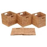 Storage Baskets Wicker Cube Baskets Foldable Handwoven Water Hyacinth Laundry Organizer,Set of 4 pcs Baskets-11x11x11inch