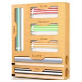 Bamboo 【6 IN 1 Baggie&Wrap Organizer 】The premium bamboo storage contains 4 bag organizers & 2 foil and plastic wrap dispenser with cutters. Keep your plastic wrap and food storage bags neat and organized with this bamboo box. A very beautiful and practical kitchen organizer and storage. 【4 Bag Organizer】This bag organizer has 4 compartments, basically compatible with all types of kitchen food storage bags, contains Gallon, Quart, Snack, Sandwich. Just put the food storage bag into the Bamboo storage box according to the label display. Complete spacing and opening bumps make the bag less likely to drop and not get mixed up.