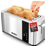 Mueller UltraToast Full Stainless Steel Toaster 4 Slice, Long Extra-Wide Slots with Removable Tray, Cancel/Defrost/Reheat Functions, 6 Browning Levels with LED Display