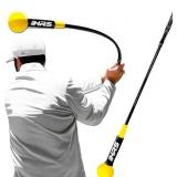 Engage your core muscles before hitting the golf course with Hit Run Steal golf swing training aid, perfect for correcting hand-to-body sequencing for long-distance powerful shots. It features a multi-layered strong flexible shaft with a weighted ball tip and an advanced non-slip handle grip. A perfect golf trainer for building your swing confidence. Master the technique of swing rhythm, balance, and tempo control, and develop muscle memory through instant feedback mechanism of our golf training aid. Groove consistent and well-timed swings Unleash your true power potential with our golf trainer swing aid, and build a smooth transition from backswing to downswing which increases your swing speed, and delivers powerful clubhead velocity for maximum distance.