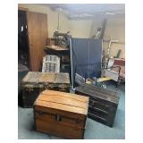 Get it fast! A fine assortment of quality furniture including a brown leather couch and chair, wicker chair, various sofas, bookcases, side tables, solid wood dining table set, patio furniture, a stunning brass headboard, vintage schoolhouse desk and gorgeous vintage trunks. A vintage Schwinn bicycle, Craftsman Radial Saw, Toro Power Curve 1800 and various hand and yard tools await you! Framed prints, assorted lamps and décor, model motorcycles, fine rugs and more are ready to spruce up any room in your house. Don’t miss out on the costume jewelry, ping pong table, outdoor chiminea, children’s games and other fun finds! All from a smoke and pet-free home. Be here on time! We cannot extend this 2 hour sale! Everything must go! Bring packing and help to move furniture/equipment since we cannot assist you. Sexton Family |