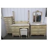 Bedroom Set, Dresser, Desk With Chair, Lingerie Chest, Twin Size Headboard and Footboard, No Bed Rails