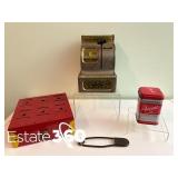 Estate Sale Features: Large Collection of Vintage and Antique Sewing Machines, Arcade Machines and Games, Vintage Life Size Old Reno 49 Cowboy Working Slot Machine, Vintage Matsuya Pachinko Machine, Vintage 'Poosh-M-Up Jr.' Pinball Game, Miniature Harrah’s Vegas Craps Game, Vintage Working Americana II Wurlitzer Juke Box, Hand Painted Lefton Porcelain Pitcher 769, Antique and Vintage Scales, Vintage Westinghouse and Mixette Mixers, Sunbeam Mixmaster Mixers, Vintage Toasters, Antique Grinders, Hollywood Regency Scales of Justice with Marble Base, Antique Mrs. Wheelock’s Pattie Iron Set, Antique Ceiling Mount Meat Scales, Large Antique Wood Yoke, Antique Meat Hooks, Marvel Register Pocket Bank, Vintage Wesco Uncle Sam Three Coin Register Bank, Antique Mortars and Pestles, Fenton Green Satin Uranium Glass Praying Boy and Girl Figures, Burmese Duck Gold Lacquer Trinket Box, Antique Opera Glasses, Vintage Kodak Baby Brownie and Filmo Cameras, Antique Flower Press, 40 Year Perpetual Calendar, Vintage 1950's Ransburg Hand Painted Breadbox, Vintage French Taxi Fare Meter, Tall Cut Crystal Decanter and Stopper, Vintage Porcelain Siamese Cat Figurine, Television Lamps, Vintage Art Prints from Swedish Artist John Bauer, Vintage Round Frontier Suppliers Fiberglass Lasso Box with Lid, Vintage Shaving Box with Razors and Accessories, Vintage Schick World Travelers Kit, Ornate Cast Iron Match Holders, Collection of Vintage Flasks, Vintage Sawyer's View-Master Stereoscope, Vintage Cameras, Vintage Lighters, Empire Electric Presser, Wear-Ever Aluminum Jiffy Juicer, Cast Iron Water Pump Lamp, Vintage Cast Iron Boston Terrier Doorstop, Vintage Brass Blow Torch, Roman North African Oil Lamp, Vintage Irish Tape Stroboscope, Vintage Toys, Ace Novelty Street Kids, Thomas Dam Troll Dolls, Mithy Troll Doll Head Stocking, Vintage Windup Toys, Raggedy Ann and Andy 100th Anniversary Plush, Knickerbocker Andy Doll, 1925 "Raggedy Ann's Wishing Pebble" Book, Vintage Mattel Barbie, Vintage 1980's Tara Toy Corp. Fashion Doll Case with Dolls and Accessories, Collection of Vintage TY Beanie Baby Dogs and Unipak Pink Poodle Plush, Vintage Mr. Bim Zippy Banana Eating Chimpanzee, Vintage Enesco Clown Doll, Vintage Troll Barbie, Art Nouveau Silver Finish Decanters, Vintage Porcelain Dutch Girl Tea Pot, Blue Rose Polish Pottery, Red Sea Remington Spring Garden Tea Kettle, Arthur Wood Staffordshire Teapot, Vintage Enamelware and Metal Tea Kettles, Victoria Lusterware Sugar Bowl with Lid, Vintage Miali Pottery Butter Churn Crock, Vintage Kamenstein White Cat Tea Kettle, Vintage Cast Iron Cherry Blossom Tea Kettle Made in Japan, Vintage Federal Glass Refrigerator Dish, Czech Lusterware Creamer Dishes, Vintage Meka Enameled Sterling Silver Condiment Set in Lined Case, Large Collection of Vintage Shot Glasses, and Much more! |