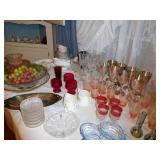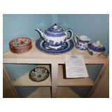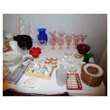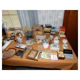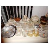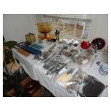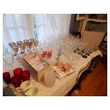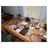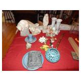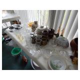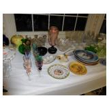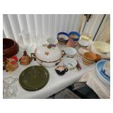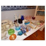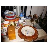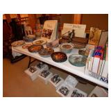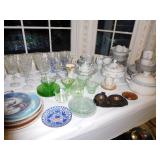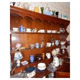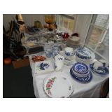 Every kind of collectible plate you can think of including Arabia China: Limoges set, Castleton, Nippon, Flow blue, RS Prussia, Bavaria, and more! Roseviller, Delft, Noritake pottery Blue Willow Teacup collection Crystal Vintage glassware: Fostoria, Depression, Ruby Cloissone vases Pottery: Hull, Roseville, Local artists Dept 56 Holiday Gurley candles