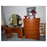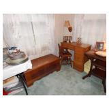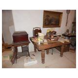 This house is packed!! There is something for everyone! Beautiful antique furniture Oak Stickley mission rocker Harp Chairs Oak Ball & Claw table very nice! Painted corner cabinets Antique Wicker Several antique side tables Matching antique curved dresser & vanity George Feige Sectional bookcases Trunks Children's desk Full brass bed Double white wrought iron bed