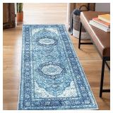 Well Woven Jolena Multi Blue Vintage Oriental Distressed Medallion Pattern Boho Doormat Rug (2' x 3')